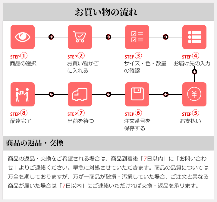 *商品の品質には万全を期しておりますが、万一、不良・破損・汚損・誤納品などがございましたら商品到着後7日以内にご連絡下さい。早急に対応させて頂きます。